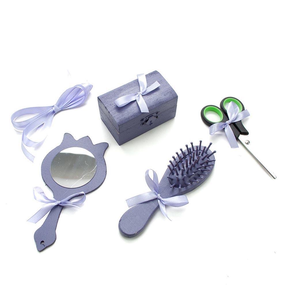 - Accesorii incluse: Foarfecă, perie de păr, oglindă, cutiuță pentru șuviță, fundiță