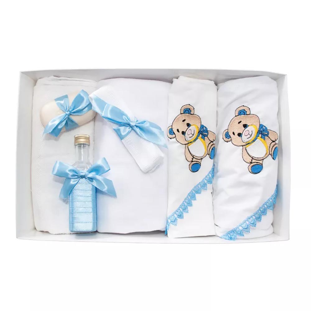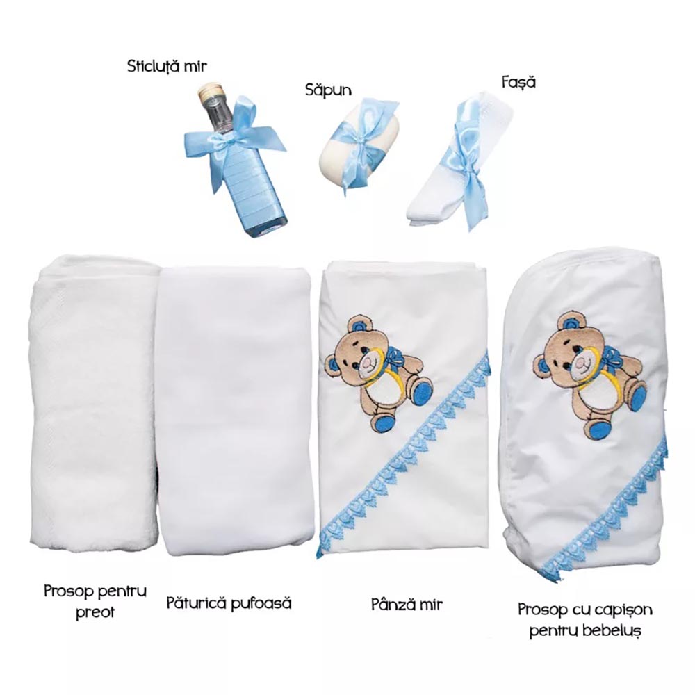 Trusou Botez 7 Piese Personalizat cu Broderie, Bleu, Ursuleti